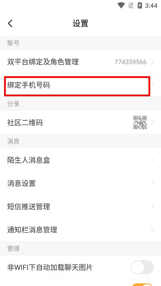 4、在设置页面中找到绑定手机号码选项,点击后按照提示完成手机号码的绑定操作。