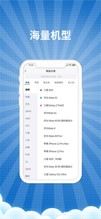 ②、海量机型,用户可以快速找到自己需要回收的手机型号,并获取相应的回收报价;