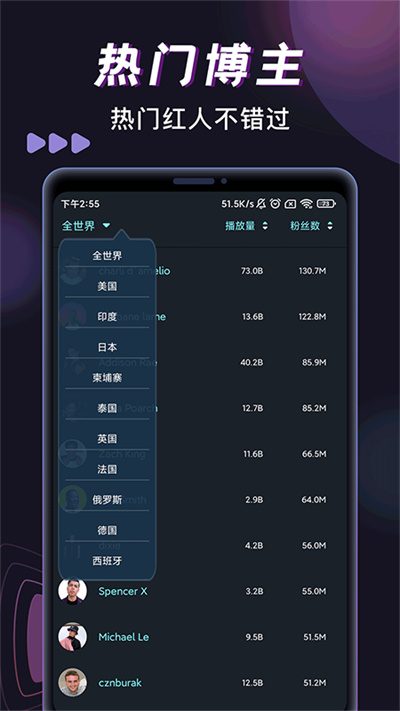 3、帮助用户查看热门博主的视频内容,了解最新的视频趋势,为用户的视频创作提供灵感和参考;