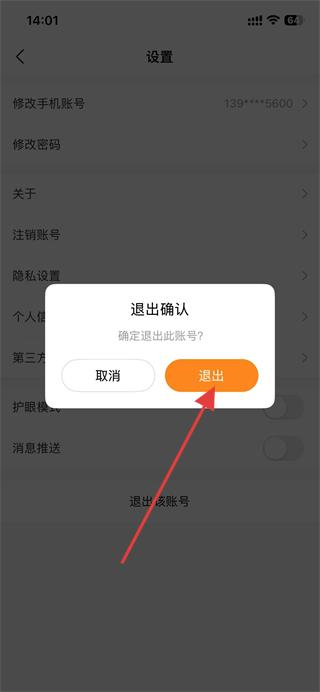 4、在弹出的提示框中,点击退出即可退出登录。