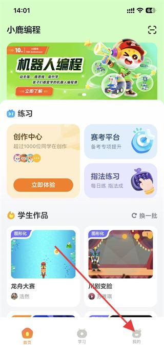 1、打开小鹿编程APP,点击底部导航栏我的选项。