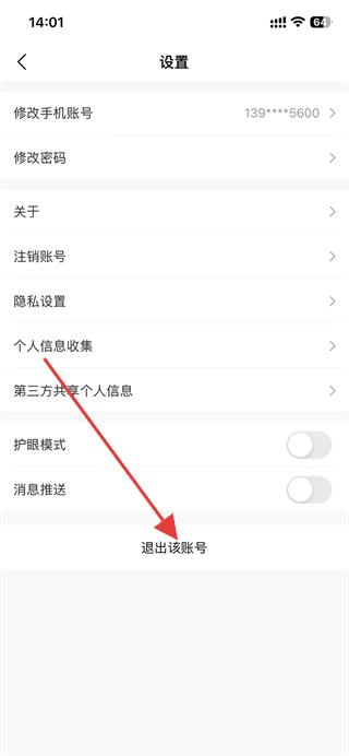 3、在设置页面,点击下方的退出该账号选项。