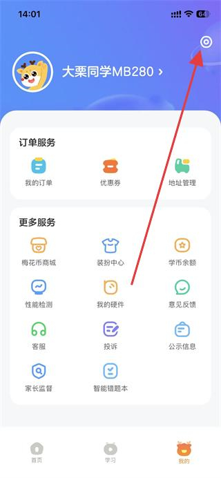 2、在我的页面,找到并点击右上角的设置图标。