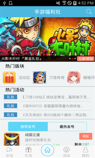 手游福利社是一款专门为用户设计的游戏助手,为用户提供给力的游戏礼包和商场兑换活动,还为玩家提供游戏论坛,一起谈天说地,有需要的用户欢迎下载!