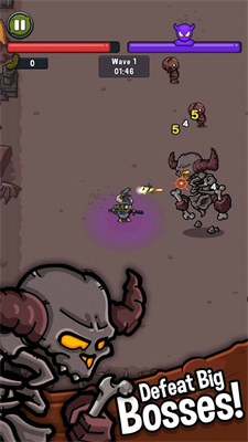 1、自动射击,你只需要一根手指来控制角色的移动,角色射出的子弹百发百中;