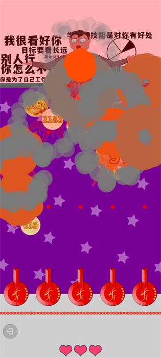 1、为了缓解压力,需要使用各种射击弹药来射击老板,发泄自己的怨气;