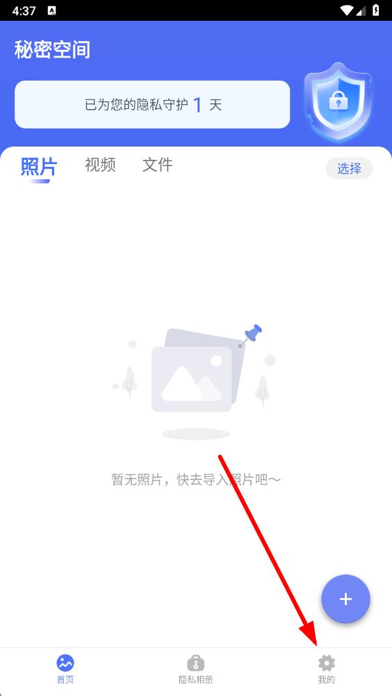 1、打开秘密空间app,点击底部导航栏最右侧我的选项,进入个人相关设置界面。