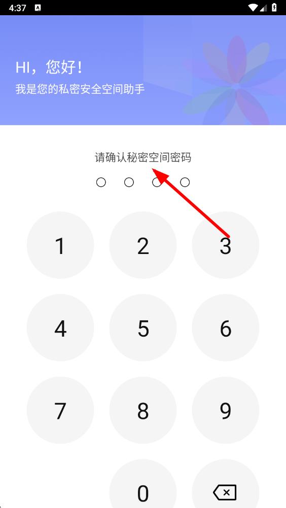 4、输入完成后,系统会提示你确认秘密空间密码,再次输入相同密码进行确认,即可完成密码设置。
