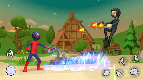 2、场上的战斗由两个火柴人进行,需要尽可能运用自己的各种武器和技能;