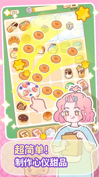 美味小镇合并手游是一款精致的卡通主题美食经营游戏,玩家将会在游戏中经营一家面包店,这家面包店最初只有简单的几款面包,为了增加面包的种类,玩家需要进行合成关卡的挑战,在游戏中玩家需要将相同的面包合成在一起,以形成一个新的面包种类,随着游戏的不断进行,玩家获得新面包品种的难度会越来越大,快来挑战自己吧!
