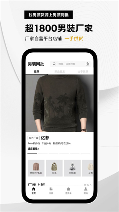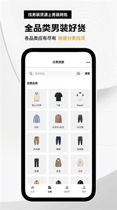 男装网批app是一款能为商家提供高质量的男装批发采购服务的应用程序,在这里我们能找到最新潮的男装款式和品牌,轻松采购所需的商品,它与众多优质供应商合作,确保商品的品质和价格都是最佳的,无论是小店老板还是服装批发商,这里都能满足购物需求。
