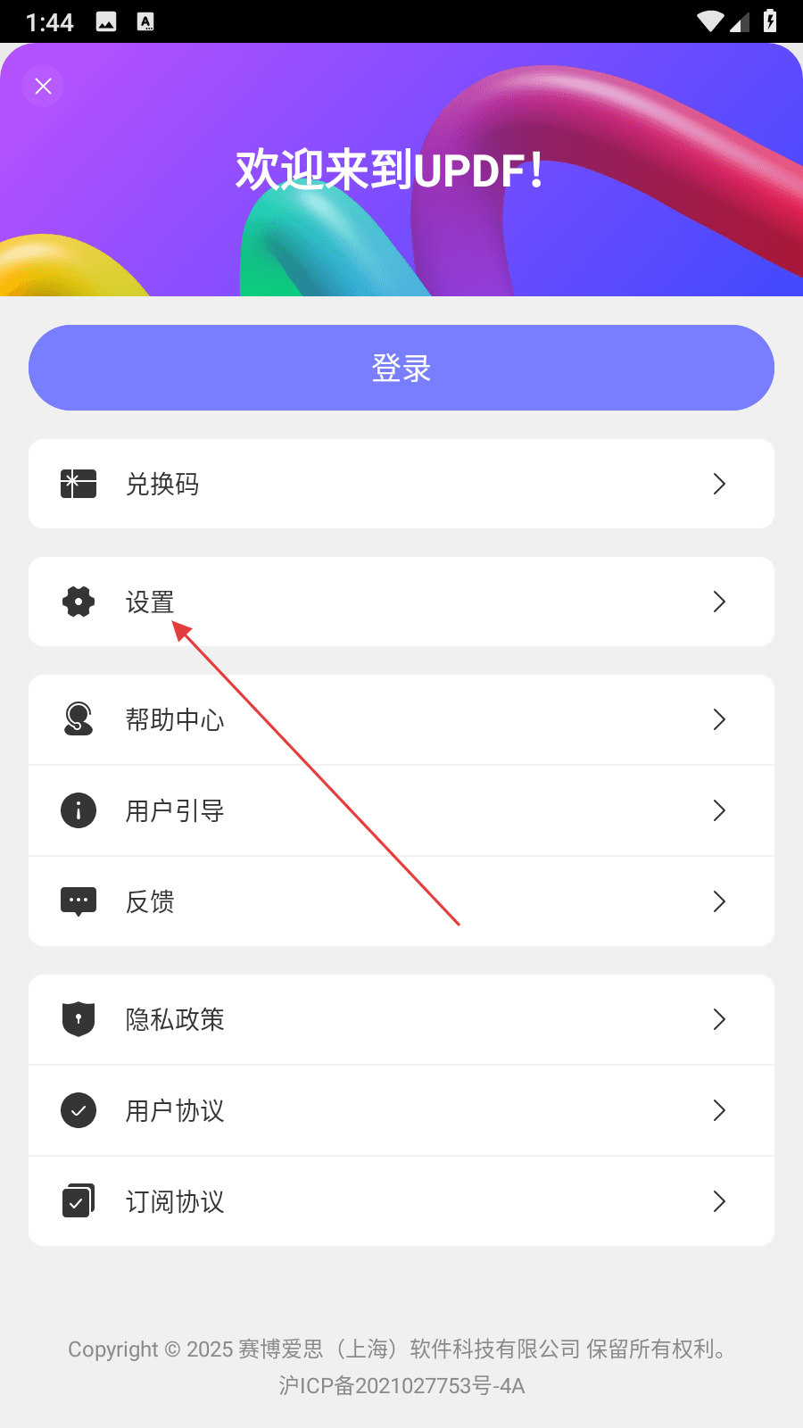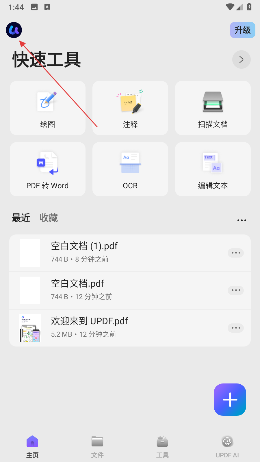 1、打开UPDF应用,点击界面左上角的UPDF图标。