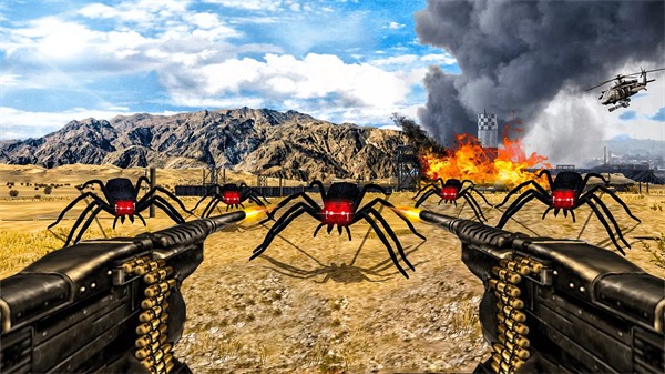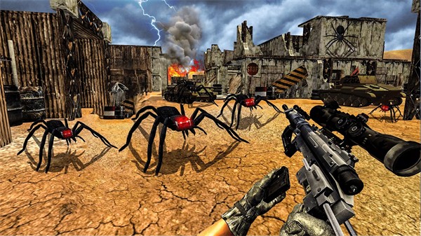 1、利用自己手中的枪支来射击和击败敌对的蜘蛛怪物,以保护自己的安全;