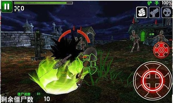 - 简单的操作,摇杆控制人物行走,轻轻触碰屏幕即可释放技能击杀僵尸;