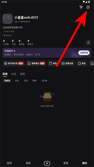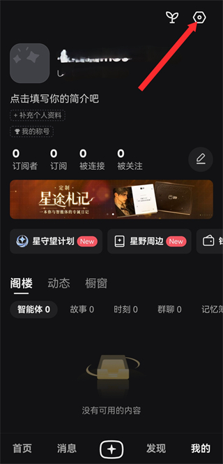 1、在星野的首页,点击底部我的按钮,进入个人的页面。