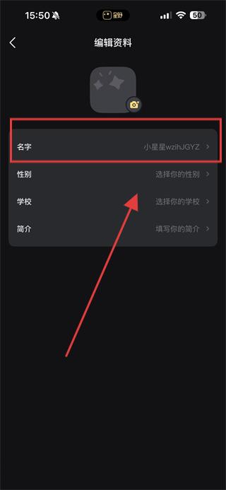 3、在编辑资料页面,点击名字选项,进入编辑名字页面。