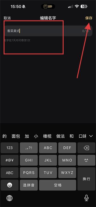 4、在编辑名字页面,输入新的名字,然后点击保存按钮,即可完成名字的修改。