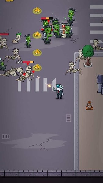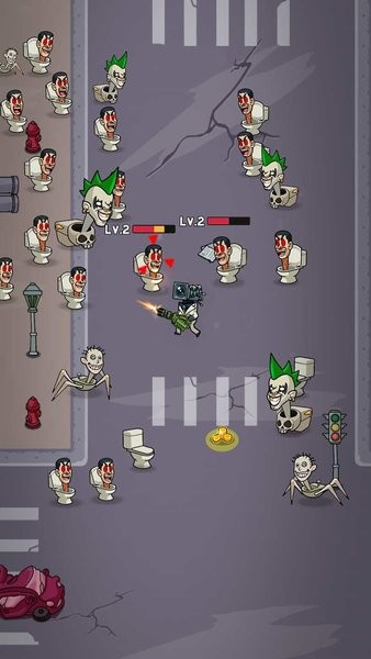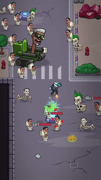 游戏的操作是非常的简单的,只需要我们不断的操作武器来进行射击即可,要及时的避开敌人的攻击,寻找合适的位置来进行输出,快速的消灭关卡的全部敌人,游戏里面会随机出现不同的道具和武器,可以及时的收集,来提升自己的火力输出能力,才能更好的应对不同的马桶人怪物,解锁新的模式来游玩,成为里面最后的生存专家。