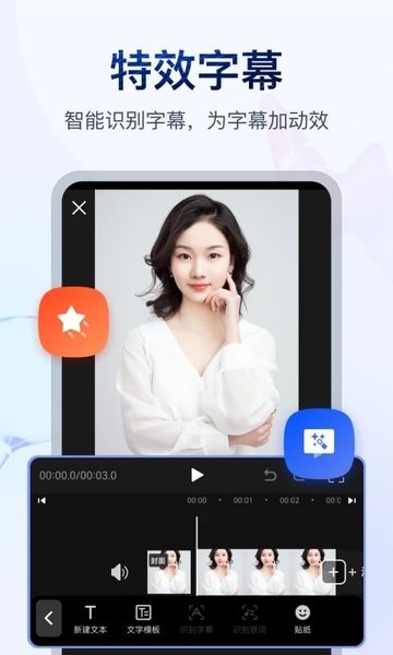 ③、添加字幕,可以轻松为视频添加文字说明、标题、引用语等,定制独特的视听体验;