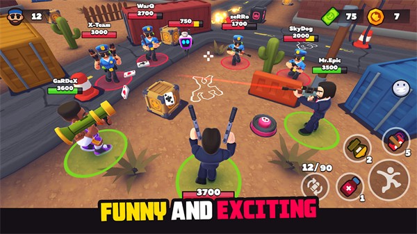 快乐地带游戏是一款卡通主题的大逃杀类游戏,在游戏中,玩家需要使用各种武器进行射杀,包括手榴弹以及轰炸机等,玩家需要杀死所有的反对力量,开启疯狂的战斗,不断调整自己的战斗策略,以求生存,游戏提供了单人模式以及多人模式,场景设计色彩多样,给玩家带来了尽情战斗的快感。