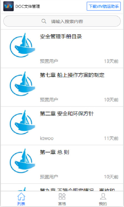 DOC文件管理是一款十分好用的商务办公类软件,是一个专门为了让用户进行航运管理的软件,为用户提供了许许多多丰富的工具,让用户可以轻松的进行办公操作,对船舶有关的文档可以进行智能化的管理,提供文档的编辑和支持格式化的内容的转化,可以在任何时候任何地点把文档共享给其他的人。