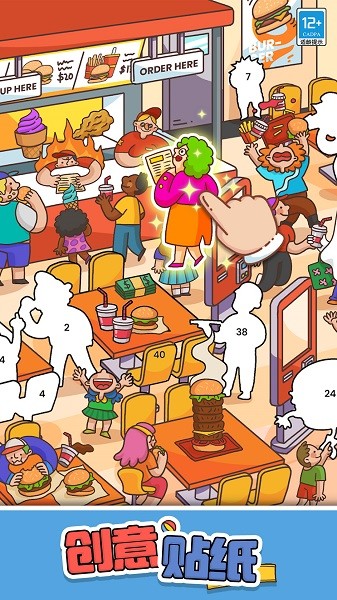 -【解谜元素】:画面不仅是填色,融入了解谜的元素,需要根据关卡中的提示和限制,选择合适的贴纸进行填色。