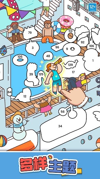 游戏的关卡主题是非常的多的,有游乐园、邮轮、公园等,都是需要我们发挥自己的想象力来进行填色,还要根据关卡的要求来进行搭配,让我们的填色更加的充满趣味,游戏里面还有大量的谜题是需要我们破解的,不断的收集新的道具来游玩,让自己的填色之旅,更加的丰富有趣,画面全部采用卡通的风格,游玩起来是非常的享受的。