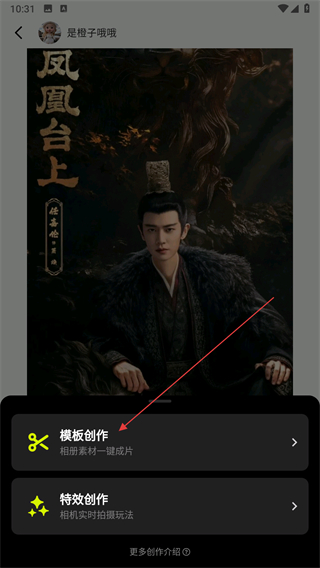 3、弹出创作选项窗口之后,选择模板创作。