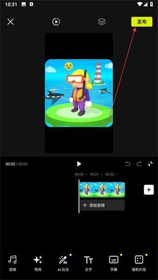 5、添加音频、特效等内容,完成后点击发布。