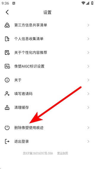 3、进入设置页后,找到删除像塑使用痕迹选项,点击进入申请页面。
