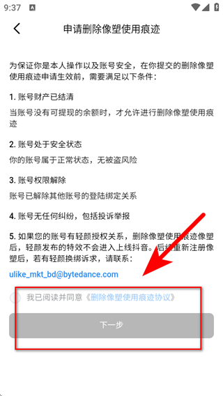 4、勾选协议,满足页面条件后点击下一步,推进账号注销操作。