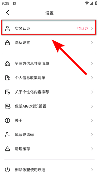 3、进入设置页后,找到实名认证选项并点击进入对应页面。