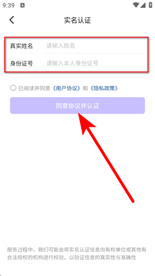 4、填写真实姓名、身份证号,勾选协议后点同意协议并认证。