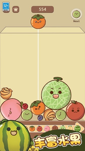 -【水果合并】:将相同的水果合并,创造高级的水果,将相同水果方块移动到一块,就会合并成更高级别的水果;