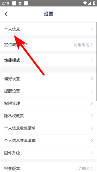 2、在设置的页面,点击个人信息,进入个人信息的页面。