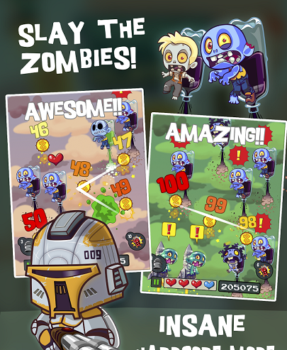 僵尸赏金猎人是一款像水果忍者一样消灭僵尸的小游戏,操作简单易上手,一次性连击最多僵尸就可以的最高分,全新的僵尸消灭游戏。游戏画面是一种卡通风格,呲着牙齿,露出两只大眼睛,而主人公非常有动漫英雄的风范,简单科幻的背景也让游戏的趣味性大大增强,喜欢就下载吧!