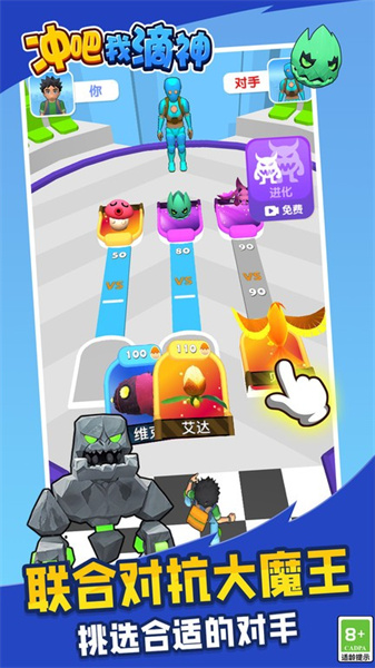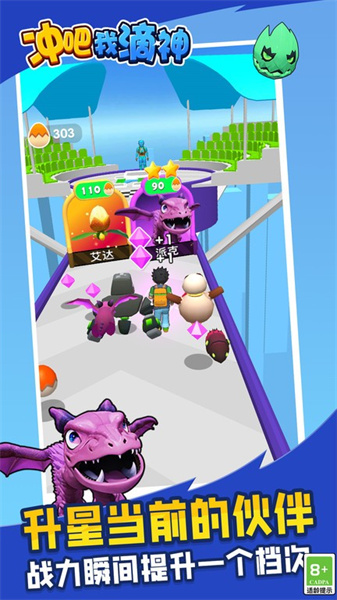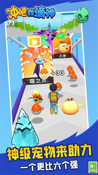 冲吧我滴神是拥有全新玩法的休闲跑酷闯关游戏,玩家需要在关卡里面不断的捕捉新的宠物来迎接不同的挑战,游戏里面还有大量的机关和陷阱是需要我们注意的,不断的收集新的宠物来增加自己的实力,顺利的击败关卡的BOSS。