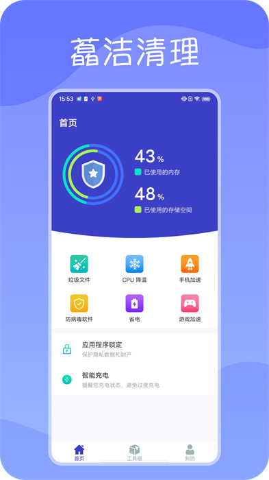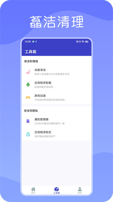 藠洁清理是一款十分好用的常用工具类软件,是一个专门为了用户提供手机清理的软件,为用户提供了许许多多丰富的清理工具,让用户可以随时满足自己的清理需求,深度的清理不会很麻烦,操作特别的简单不用忧愁,让用户手机的性能可以恢复如初。