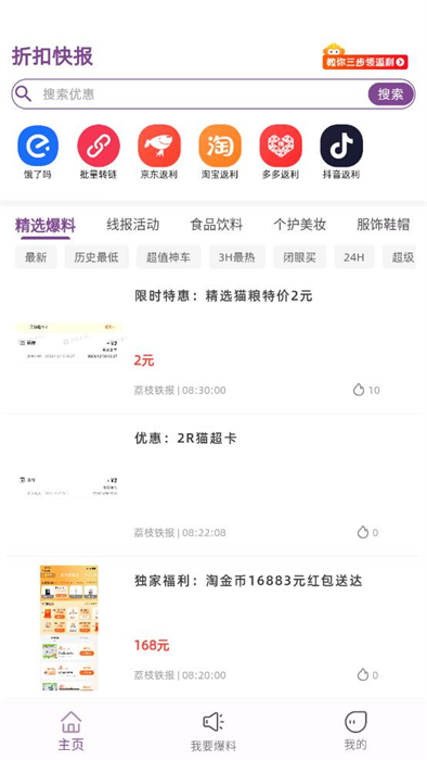 折扣快报是一款优质实用的线上购物的应用软件,通过这款软件用户可以随时随地的进行购买自己想要的商品,提供了十分丰富的商品种类,让用户可以随时轻松地进行线上购物,是一款支持低价购物的手机比价软件,汇聚了多个平台的商品价格信息,一键比价查询更加的方便。