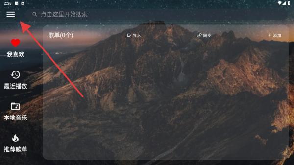 1、打开速悦音乐APP,进入到首页内,点击左上角三个横线的功能图标。