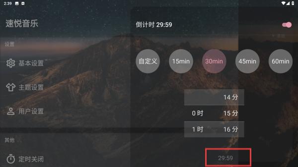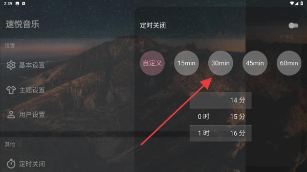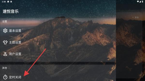 2、在弹出的菜单栏中,点击定时关闭的功能按钮。