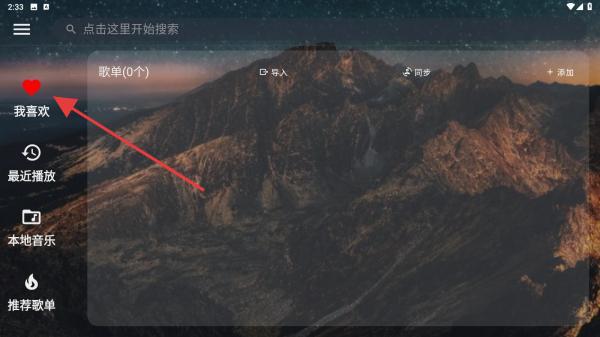 1、启动速悦音乐APP,在首页内左侧导航栏中点击我喜欢。