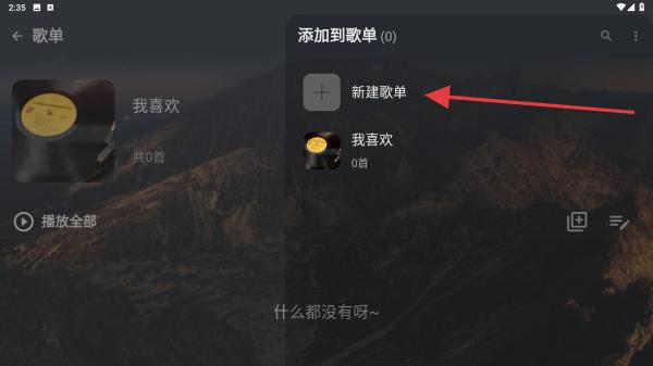 3、在右侧弹出的歌单中,点击新建歌单的按钮。