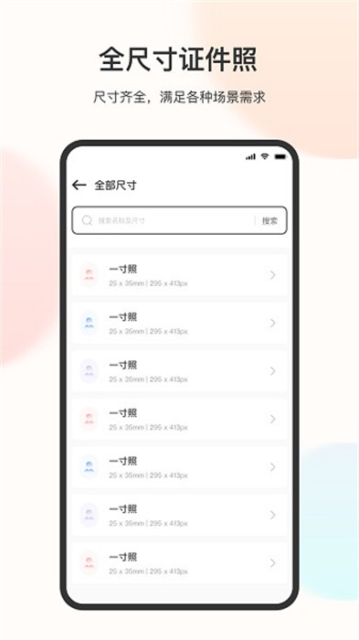 ②、更换尺寸,提供了多种尺寸的证件照模板,用户可以根据具体需求选择合适的尺寸;