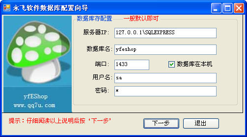 3.执行yfeshop.exe