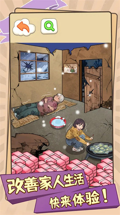 改善家人生活游戏是一款卡通风格的休闲益智游戏,此游戏的玩法在网络上非常的流行,游戏的主题是改善家人的生活,你需要把钱拖向家庭中的人或物来改善这家人的生活,拖动的顺序往往有这严格的要求,你需要认真思考其中的逻辑规则,才能通关,每一关都是设计团队辛辛苦苦设计出来的,非常有意思。