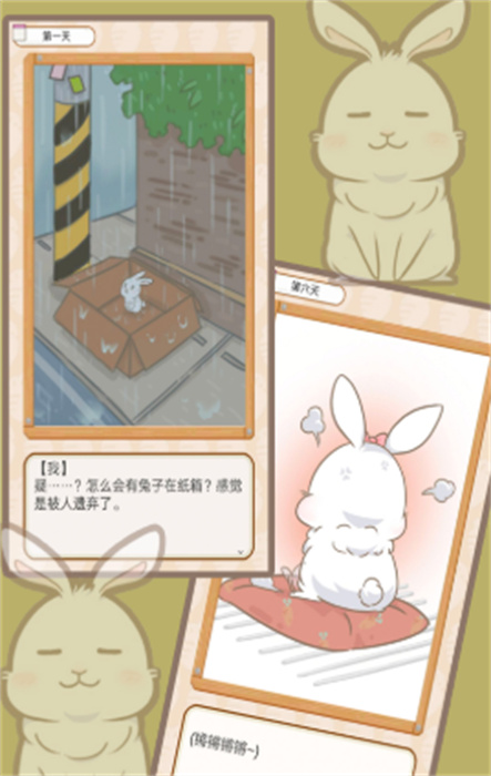 1、卡通画面非常的可爱,营造出温馨愉快的和兔兔生活的氛围;