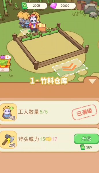 4、被你吸引而来的熊猫成员也会帮助你建造,增加你的工作效率;
