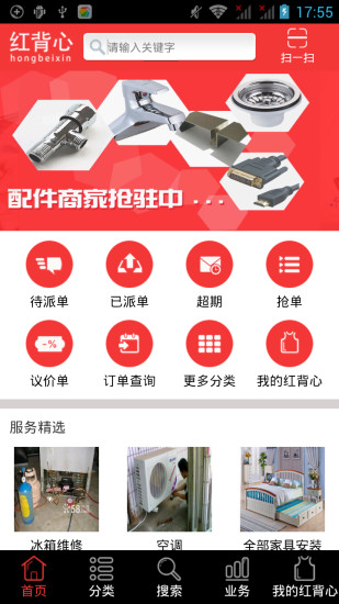 红背心服务网客户端app安卓版:一款便捷的家居服务软件。通过这款app,商家可以随时在线抢单,快速的获得订单,还可以轻松的查看和管理订单!