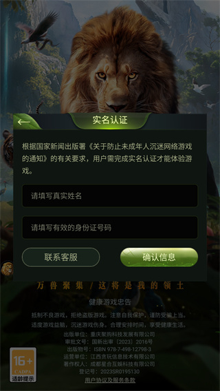 2、根据国家新闻出版署要求,输入身份证号信息,进行实名认证之后进入游戏;